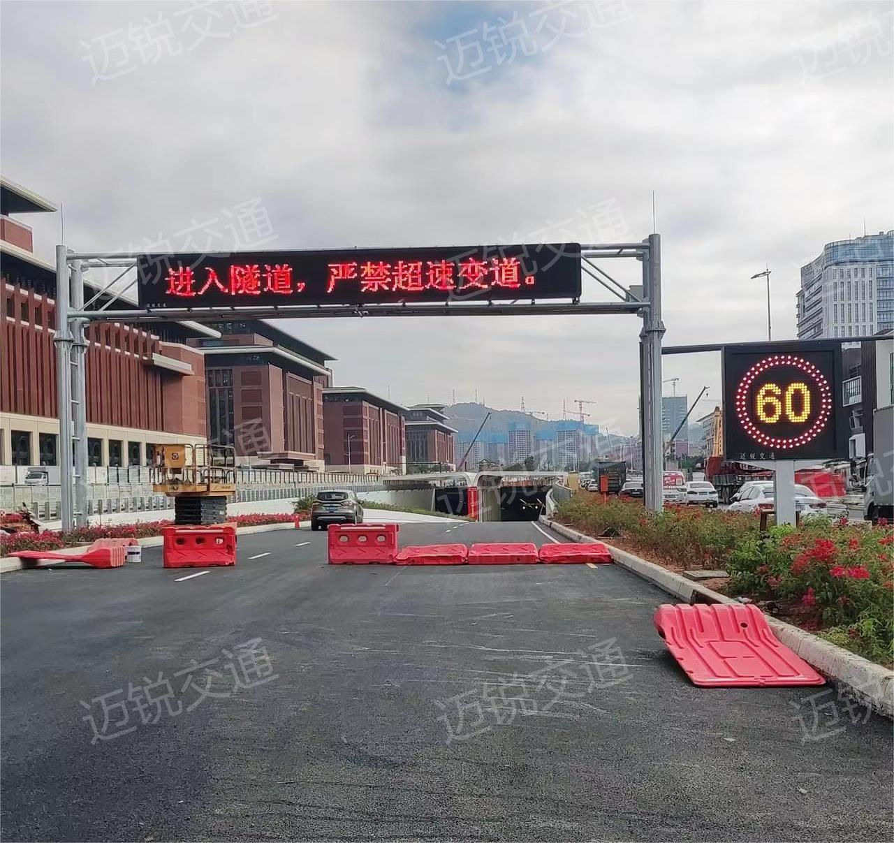 隧道内可变信息情报板,主要用于给公路使用者提供路况信息、气象信息,提醒信息等,对保障行车安全、保证运输效率、车辆使用限起到密不可分的作用。在局部路段因维修或事故等原因无法通行时,提醒驾驶员及时分流。